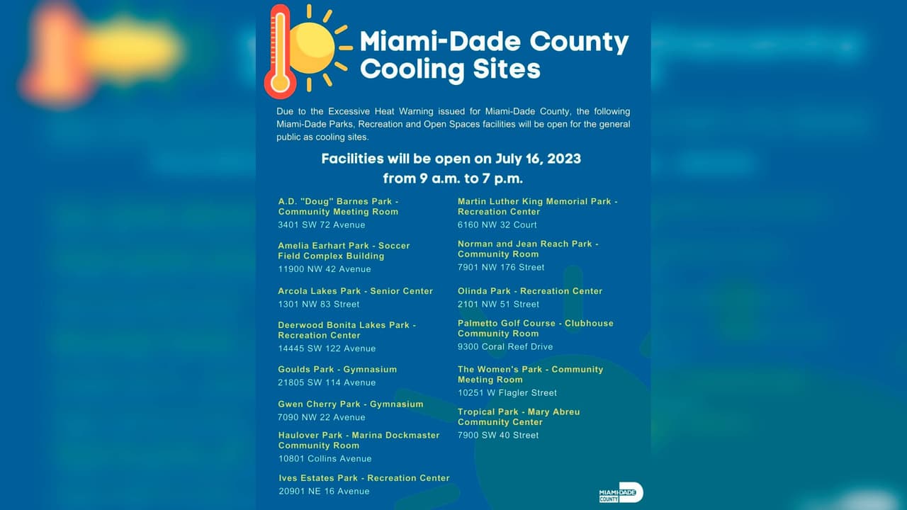 El condado Miami-Dade anunció que ha dispuesto de varios lugares donde las personas pueden entrar a refrescarse ante la peligrosa ola de calor que se ha presentado en las últimas semanas y que ha llevado a las autoridades a lanzar varios avisos y alertas, para que residentes y visitantes permanezcan protegidos.