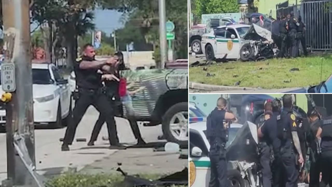 De acuerdo con la policía, todo inició con el presunto robo de un auto por parte de sujetos armados, quienes habrían apuntado con un rifle a los oficiales en medio de la persecución. El hecho terminó en un choque vehicular y los tres sospechosos se encuentran en el Hospital Jackson Memorial, uno de ellos en condición crítica. Un uniformado también resulto herido, pero ya fue dado de alta y está recuperándose. Las autoridades incautaron las armas y una máscara que se habría usado para el hurto.