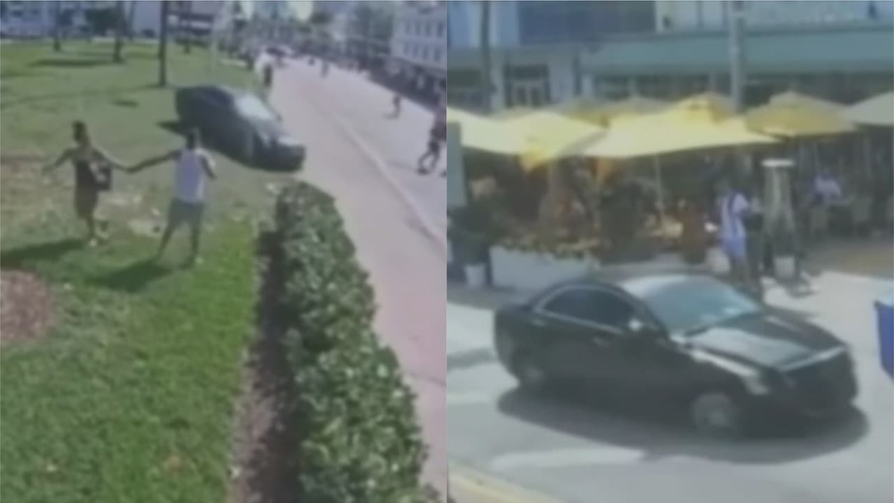 A su paso, el sospechoso chocó otros vehículos e incluso una moto de la policía de la playa. También atravesó por el jardín del parque ubicado en Ocean Drive, en donde había personas que corrieron atemorizadas al ver la persecución.