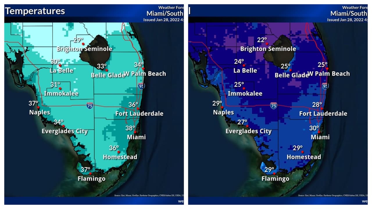 La temperatura que se espera en el área metropolitana de Broward y Miami- Dade estará entre los 35-38 grados Fahrenheit.