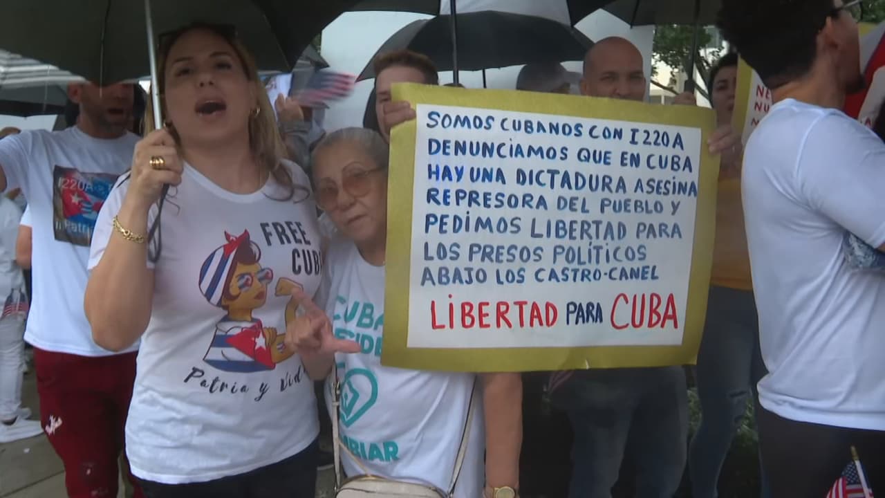 “Tenemos miedo de regresar”: Cubanos con I-220A protestan frente a oficina de DHS