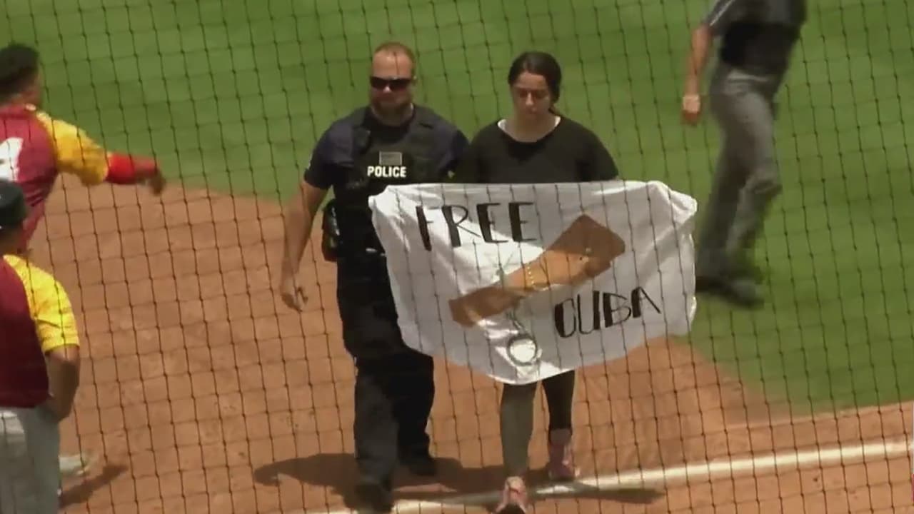 “Tenemos que vivir con coraje”: mujer interrumpe juego de béisbol de Cuba para pedir la libertad de la isla