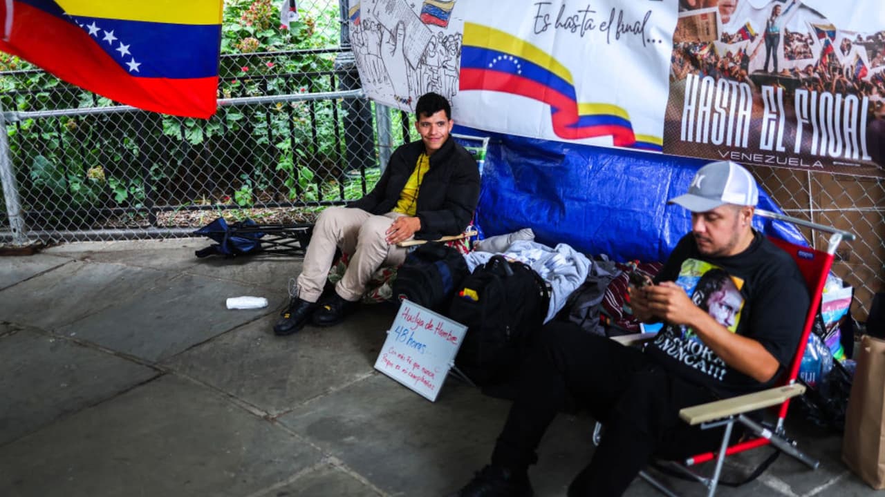 Daniel Prado y Franklin Gómez son dos jóvenes venezolanos que llevan más de cuatro días en huelga de hambre frente a la sede de la ONU en Nueva York, con el objetivo de que todo el mundo se entere de lo que sucede en su país tras el fraude electoral. Recientemente, a estos manifestantes se les unió un hombre de 64 años y, según cuenta, personas de diferentes países les han manifestado su apoyo.