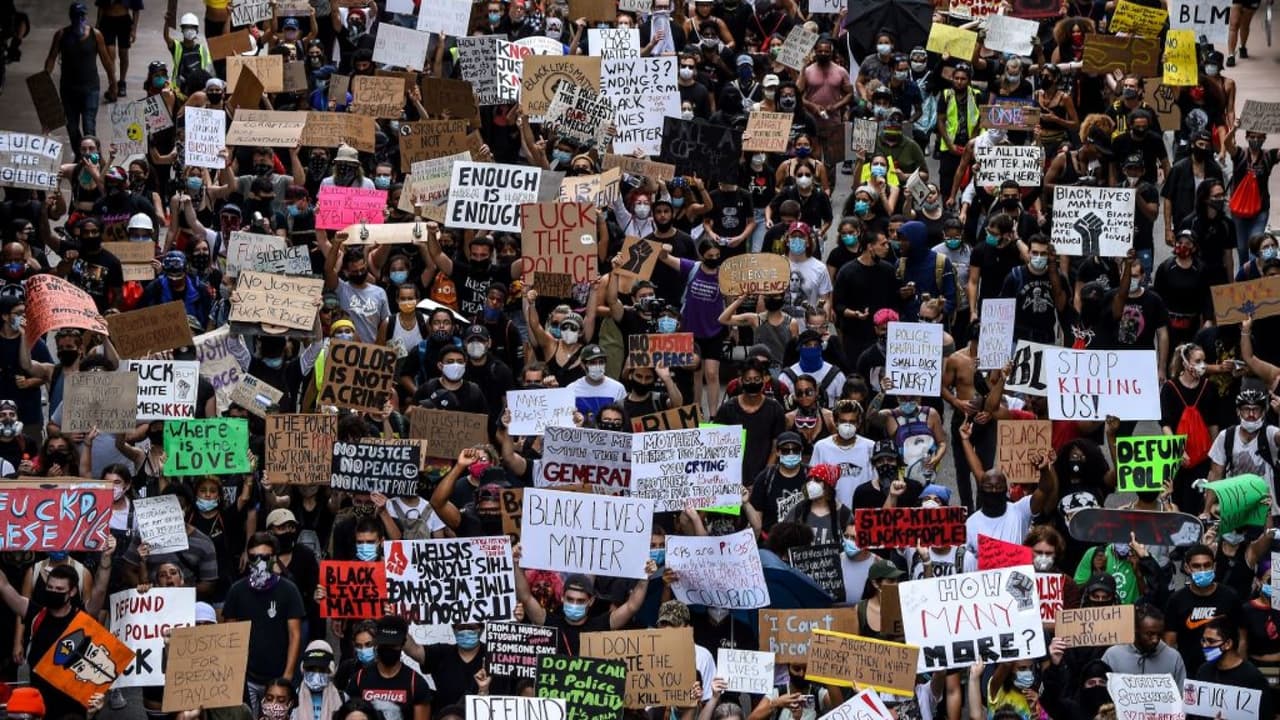 Tensión entre la policía y los manifestantes durante las protestas de este viernes en Miami
