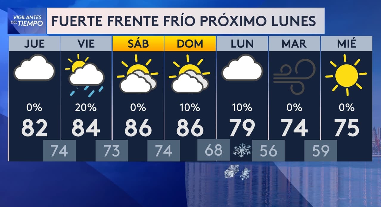 Un frente frío que pasará por el sur de Florida durante el jueves de Thanksgiving, traerá cambios en el tiempo para el área. La noche de Acción de Gracias se esperan cielos nublados y algunos chubascos, y prepara tus abrigos para las compras de Black Friday.