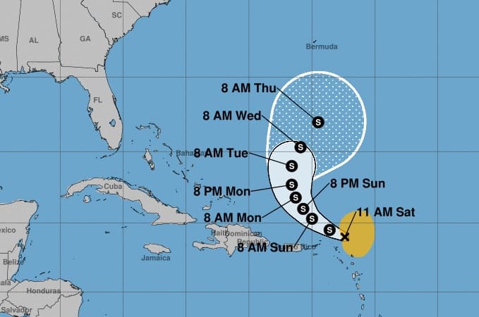 Por unos cientos de millas, el centro no tocará a Puerto Rico, pero cruzará al norte de las Islas Vírgenes este fin de semana.