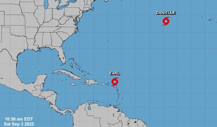 La tormenta tropical Earl se formó en la tarde del viernes. Este ciclón se le une a Danielle en el Atlántico y toda esta actividad se registra a sólo unos días del pico de la temporada de huracanes 2022.