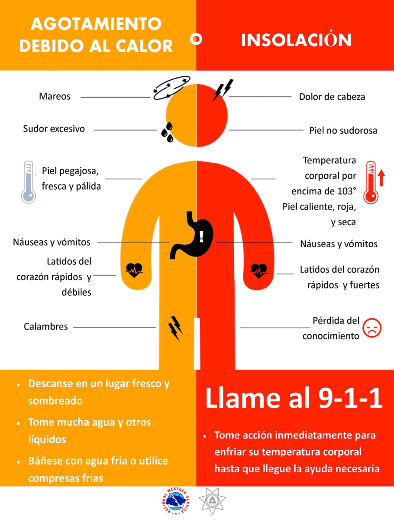 Es importante que si comienzan a sentirse mal busquen formas de enfriar su cuerpo. Si la temperatura interna llega a los 104 grados Fahrenheit estás a punto de un golpe de calor y tu vida corre peligro.