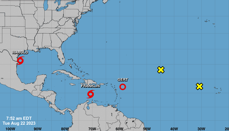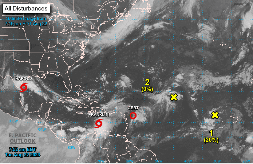 A días del pico de la temporada de huracanes 2023, así luce el Atlántico. Con la formación de Harold, ya son tres los sistemas tropicales activos, y dos estarán tocando tierra muy pronto. Te contamos.