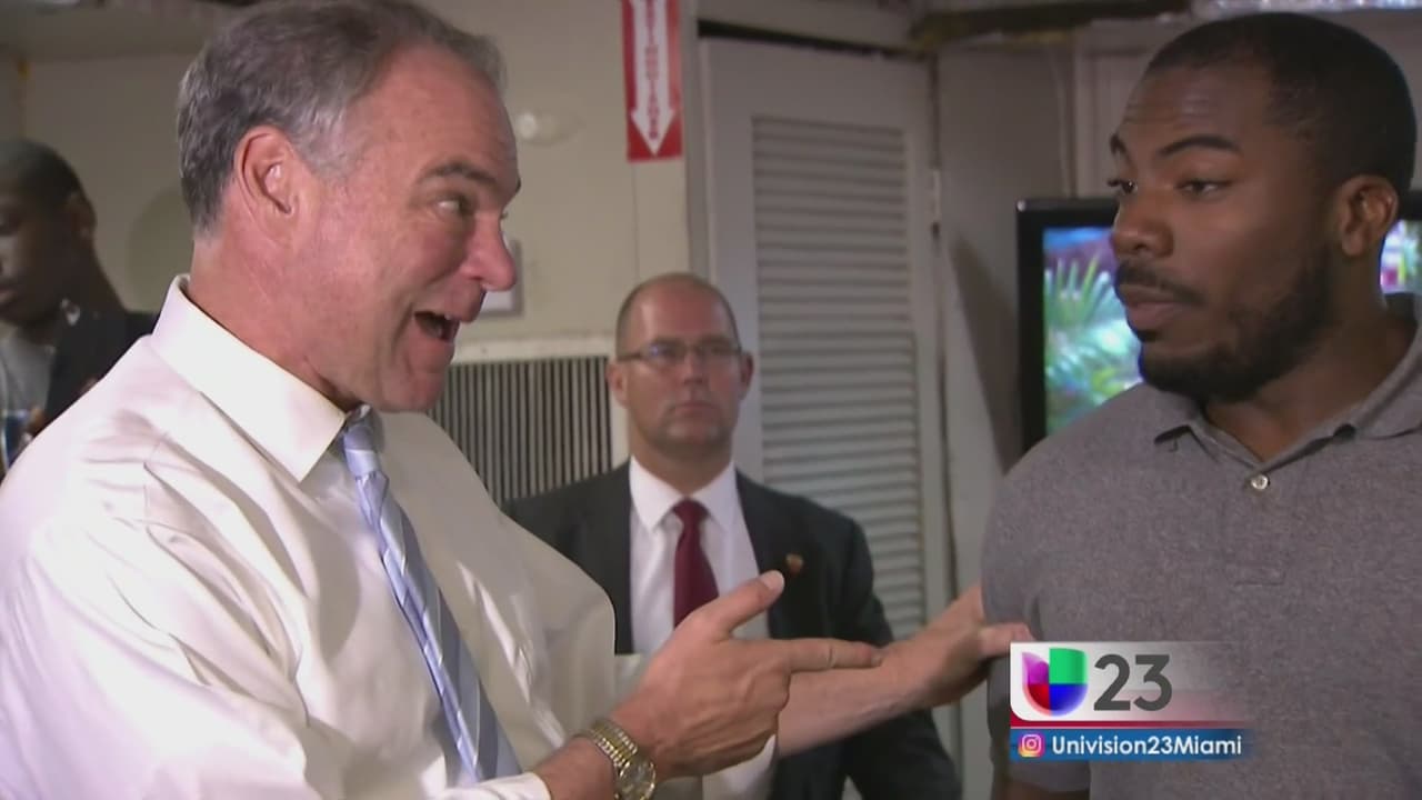 Tim Kaine hace campaña en un restaurante de Fort Lauderdale