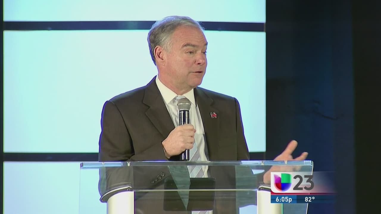 En un evento de campaña realizado en un templo evangélico, el candidato a la vicepresidencia llamó en español a los votantes.