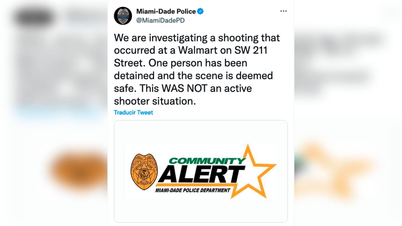 La policía de Miami-Dade informó que se encuentra investigando un tiroteo ocurrido este miércoles en un Walmart del suroeste del condado, por el que una persona fue detenida.