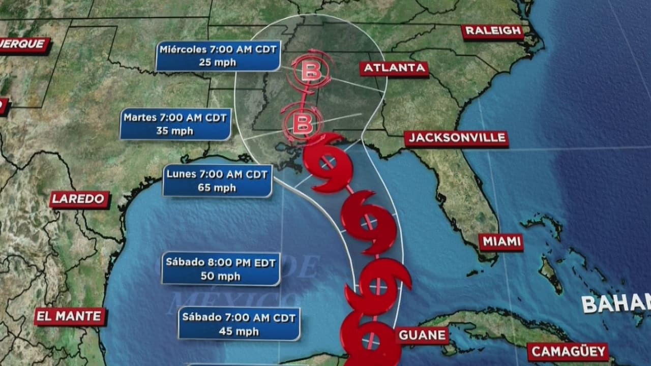 El domingo por la tarde o en la mañana del lunes llegará a las cotas del golfo, lo que causará lluvias con acumulados de hasta 6 pulgadas de agua en Florida, según el pronóstico.