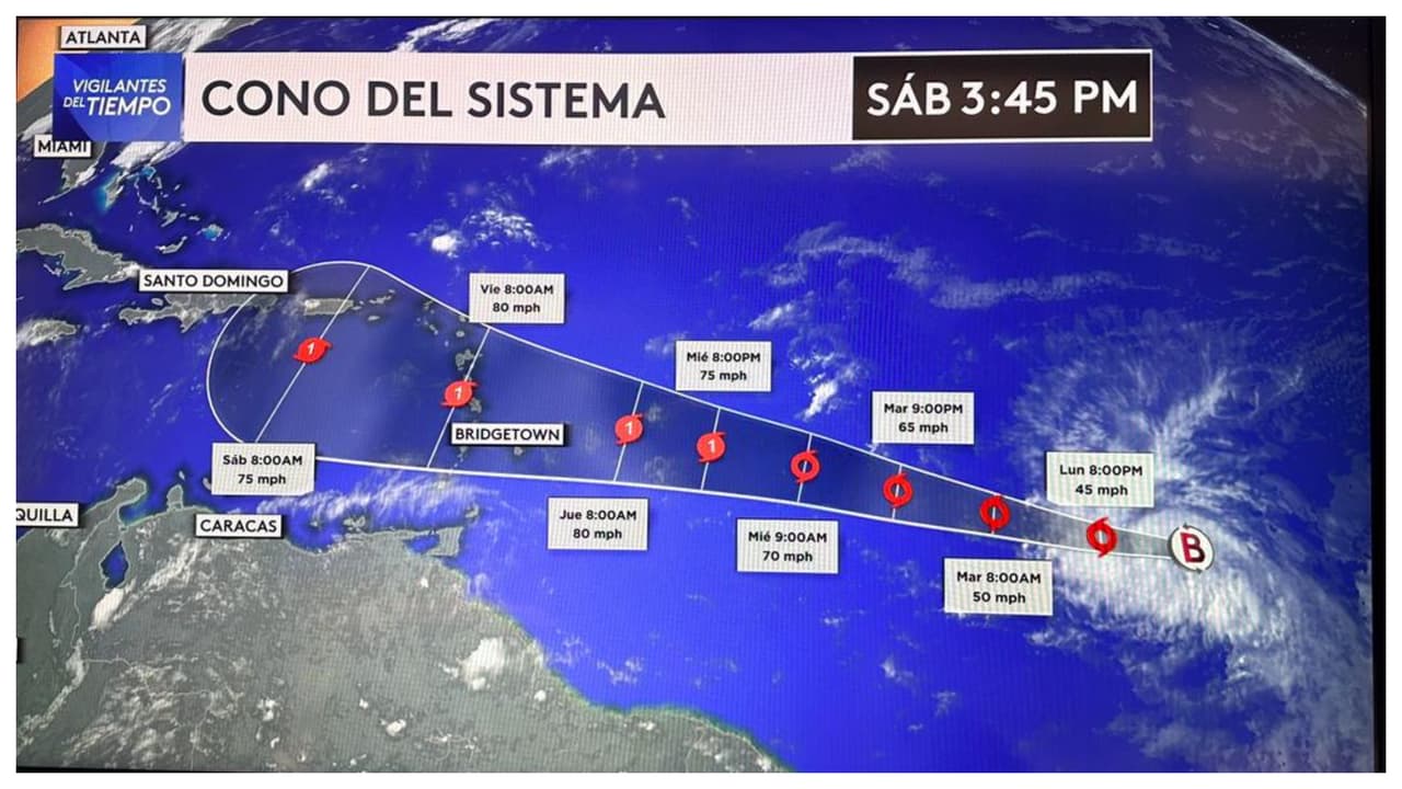 Bret puede estar cruzando muy cerca del sur de Puerto Rico y de Republica Dominicana.