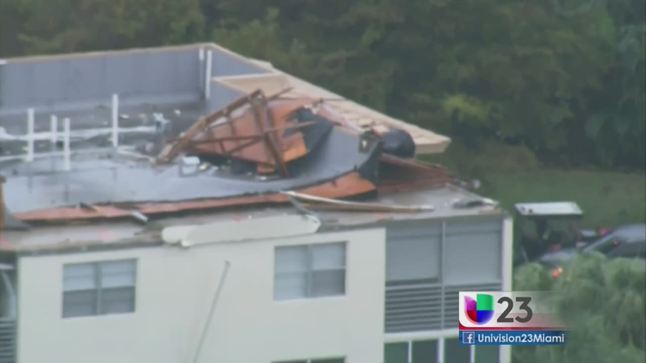 El tornado que fue catalogado EF-1 se llevó parte del techo de un complejo residencial, además de volcar varios autos.