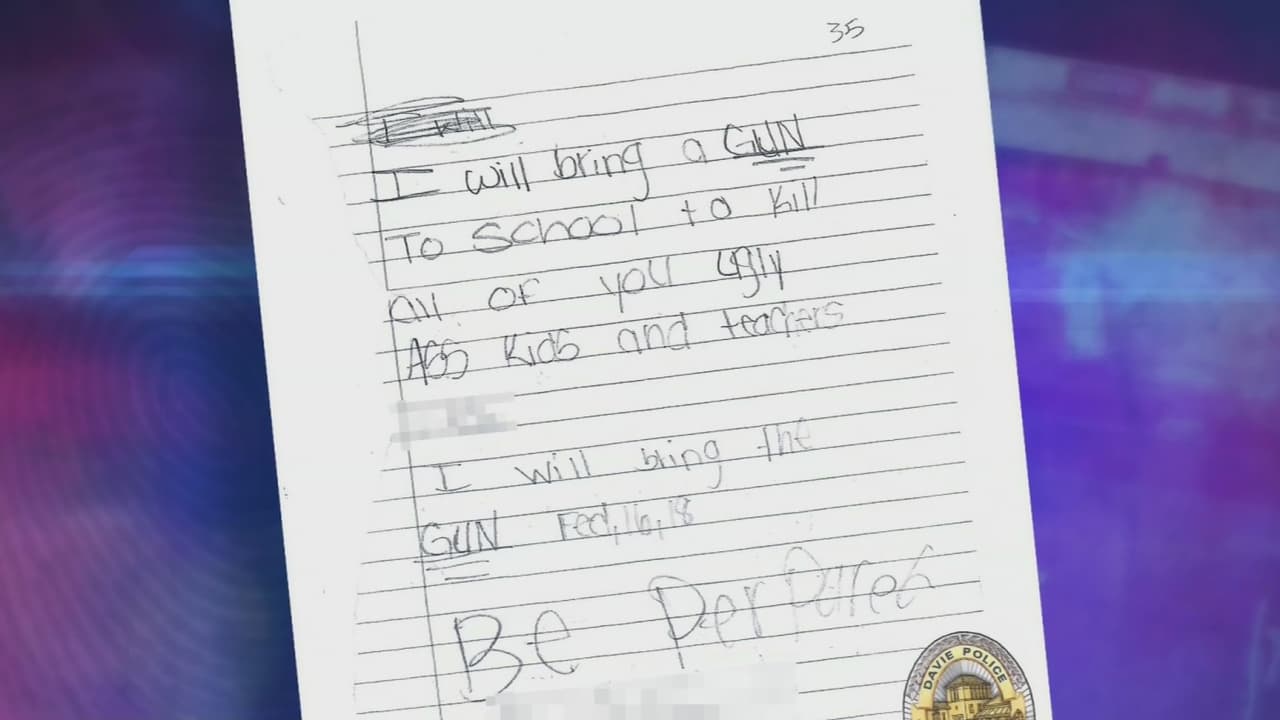 Las autoridades tienen bajo custodia a Jasmine Powell, estudiante de 11 años que cursa sexto grado en la escuela intermedia Nova en Davie, condado de Broward, después de que puso una nota amenazante debajo de la puerta de la oficina del subdirector. El hecho ocurre a un día del tiroteo en la secundaria Marjory Stoneman Douglas, que dejó 17 muertes.