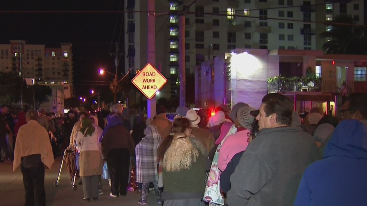 Tras una larga espera en medio del frío, cientos de personas reclaman los boletos para las cestas de CAMACOL