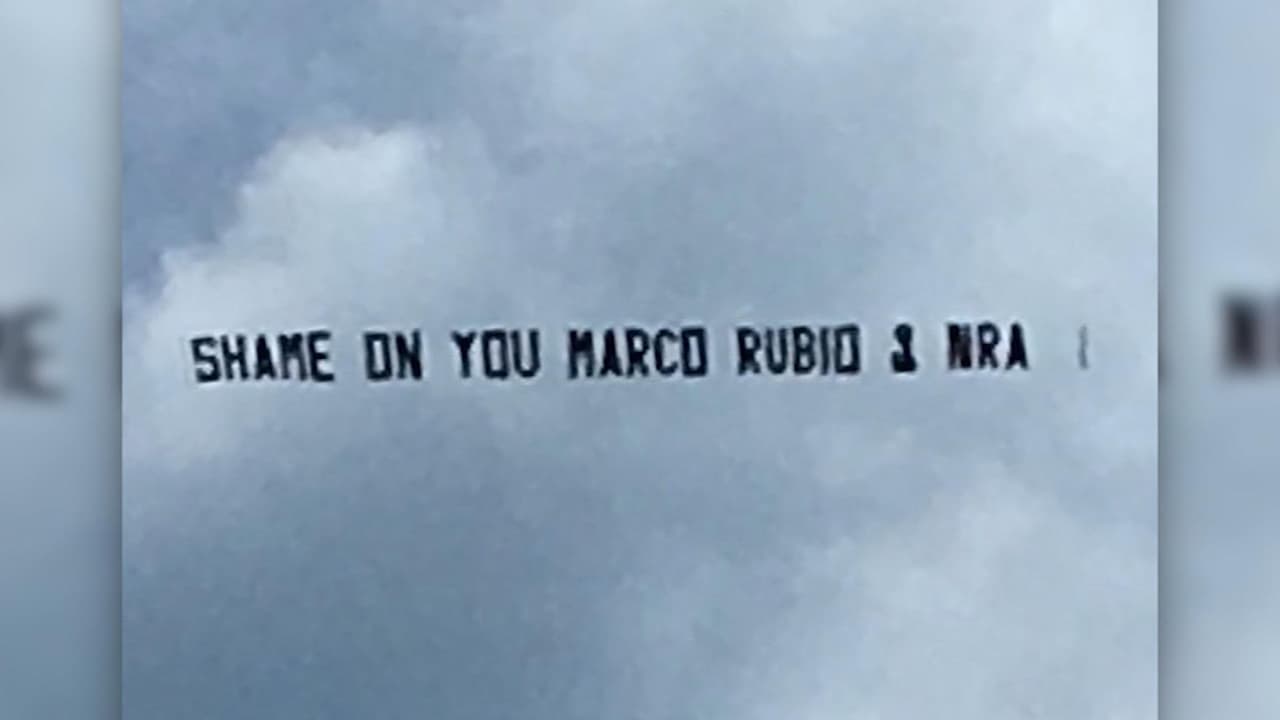 También este sábado, una mujer pagó para que una avioneta sobrevolara Miami Beach con la pancarta "Vergüenza dan Marco Rubio y la Asociación Nacional del Rifle".