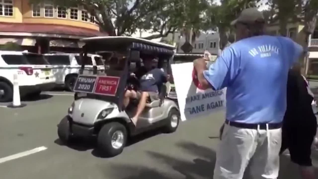 Una manifestación en apoyo al presidente Donald Tump en la comunidad The Villages, en el condado Sumter Count de Florida, terminó con insultos entre seguidores y opositores y el momento quedó captado en video.