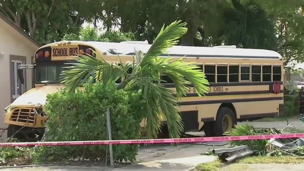 Un autobús escolar con 10 niños a bordo se estrella contra una casa en el suroeste de Miami