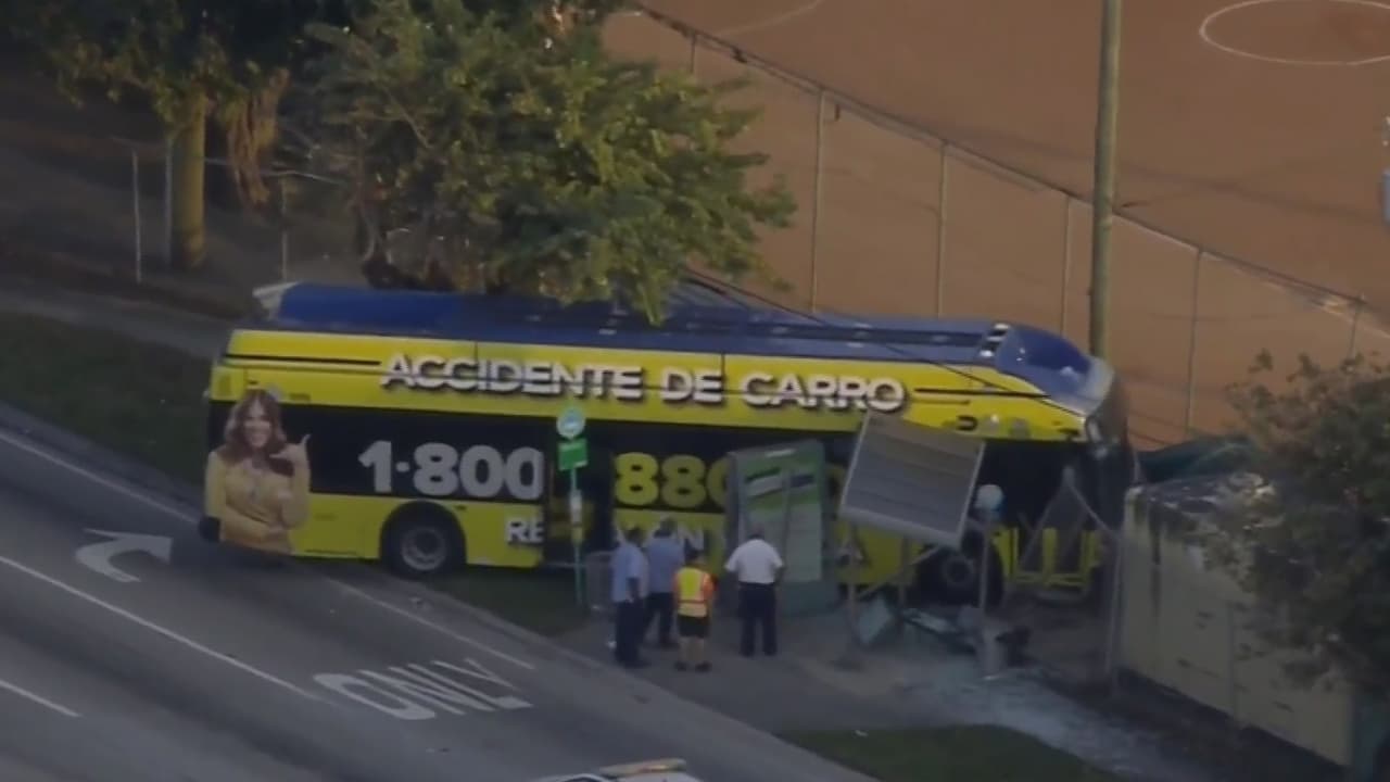 Un autobús se choca contra una parada de pasajeros en Miami-Dade