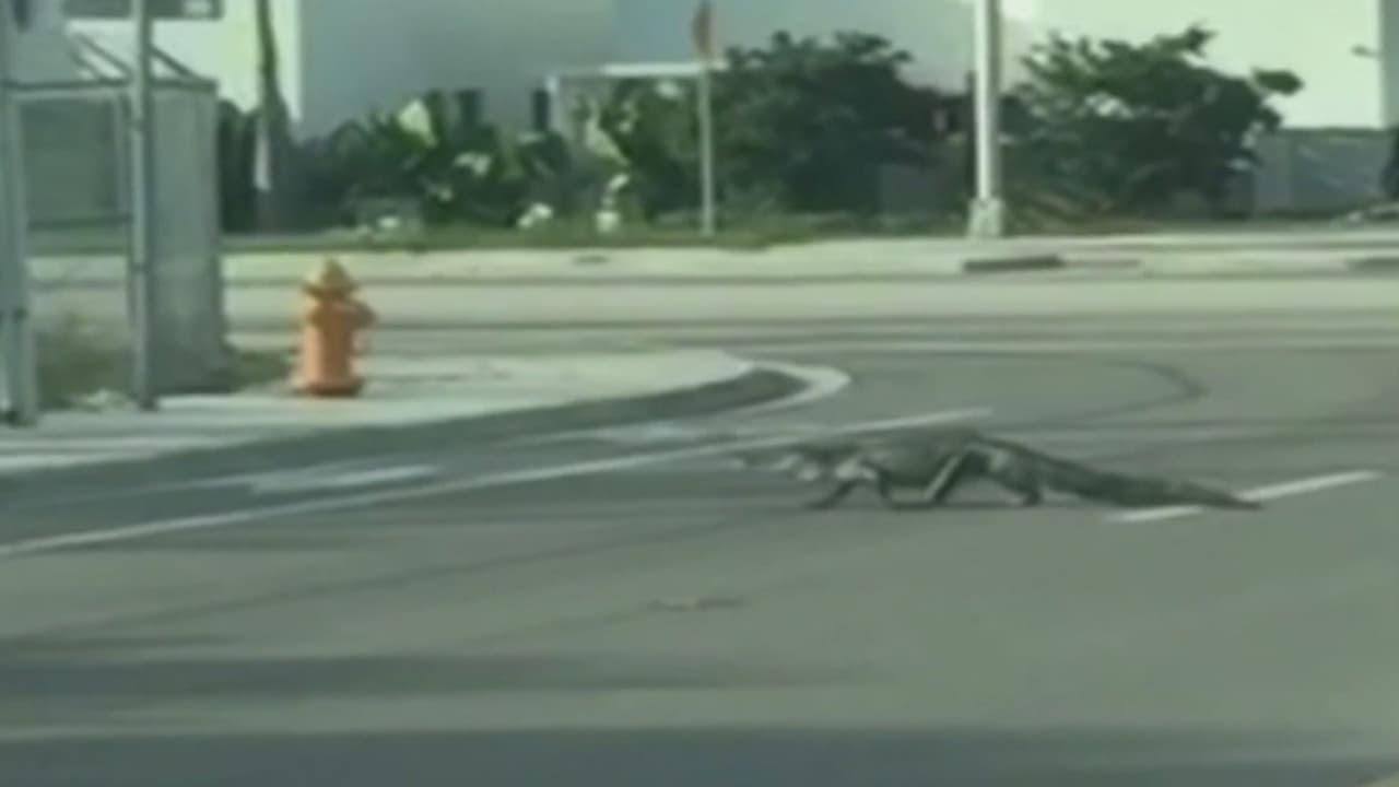 Un caimán se pasea por la ciudad de Doral y cruza las calles como un peatón educado
