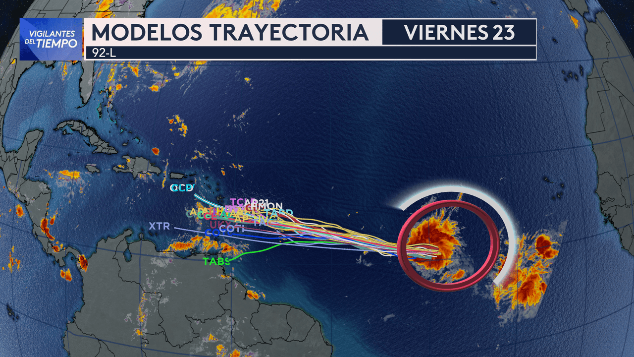 Las Islas del Caribe deben monitorear la zona de mal tiempo que se encuentra en el Atlántico y que puede convertirse en un ciclón tropical en cuestión de horas. Este sería su recorrido.