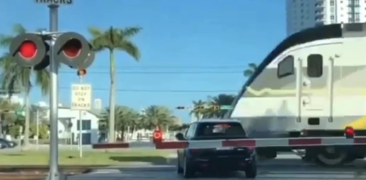 Video Trató de pasar la linea del tren en North Miami y sobrevivió de milagro