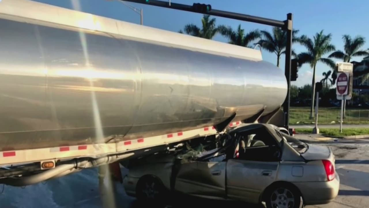 El hombre tuvo que ser aerotransportado a un hospital, donde permanece en condición crítica. Resultó herido tras el choque entre un vehículo y un camión cisterna.