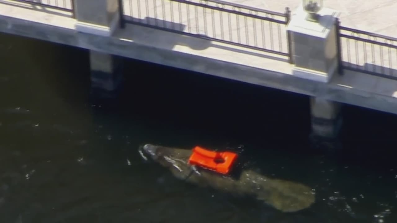 Un manatí enredado con un chaleco salvavidas es rescatado en Fort Lauderdale, Florida
