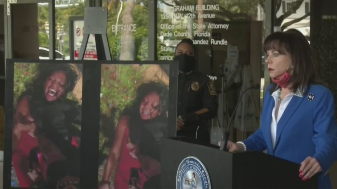 La Fiscalía estatal de Miami-Dade reveló este jueves las imágenes del hecho que ocurrió en enero. En ellas se ve al agente, que ya fue despedido, presionar con su rodilla el cuello de una mujer y dispararle con su taser. Él había alegado que ella estaba siendo violenta, pero los videos contradicen su declaración, según la fiscal. Ahora es señalado por mala conducta y agresión física, entre otros.