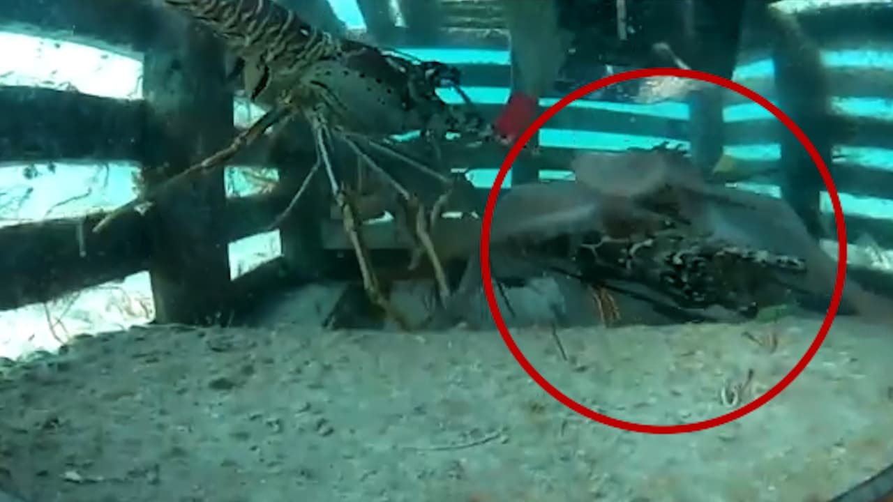 Un pulpo y una langosta pelean a muerte dentro de una jaula debajo del mar en Florida