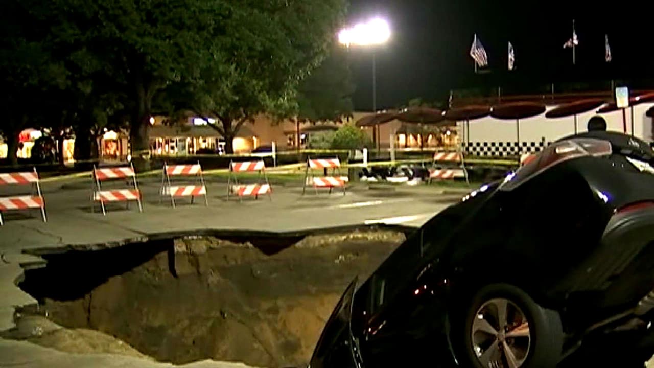 Un vehículo cae a un enorme hueco que se abrió en el parqueadero de un centro de compras en Ocala, Florida