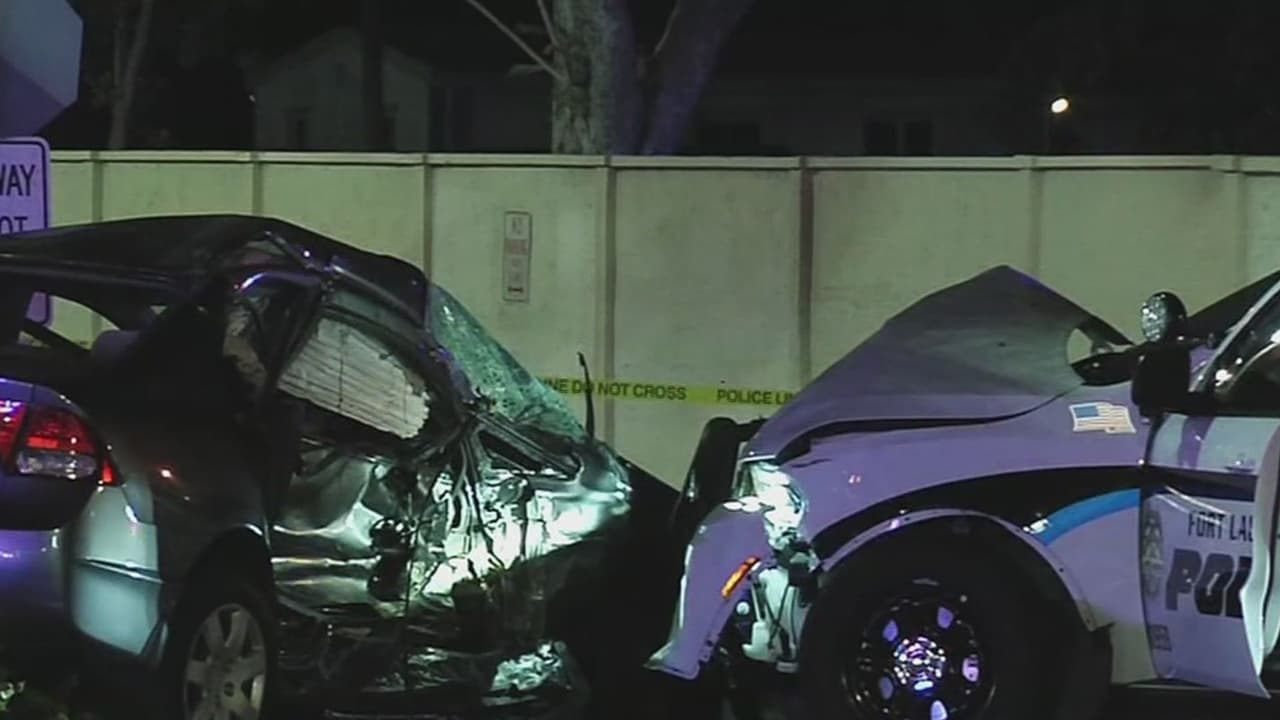 Una mujer chocó su auto contra una patrulla de la policía en Fort Lauderdale durante la madrugada del sábado. El accidente cobró la vida de la conductora y dejó herido a un oficial de la policía que tuvo que ser trasladado a un hospital cercano.