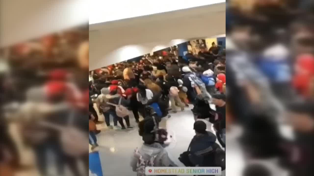 Imágenes de los videos que los alumnos circularon en redes sociales muestran como se desató el desorden a la hora del almuerzo en Homestead Senior High School. El vocero de las escuelas públicas del condado Miami-Dade confirmó el enfretamiento entre los alumnos.