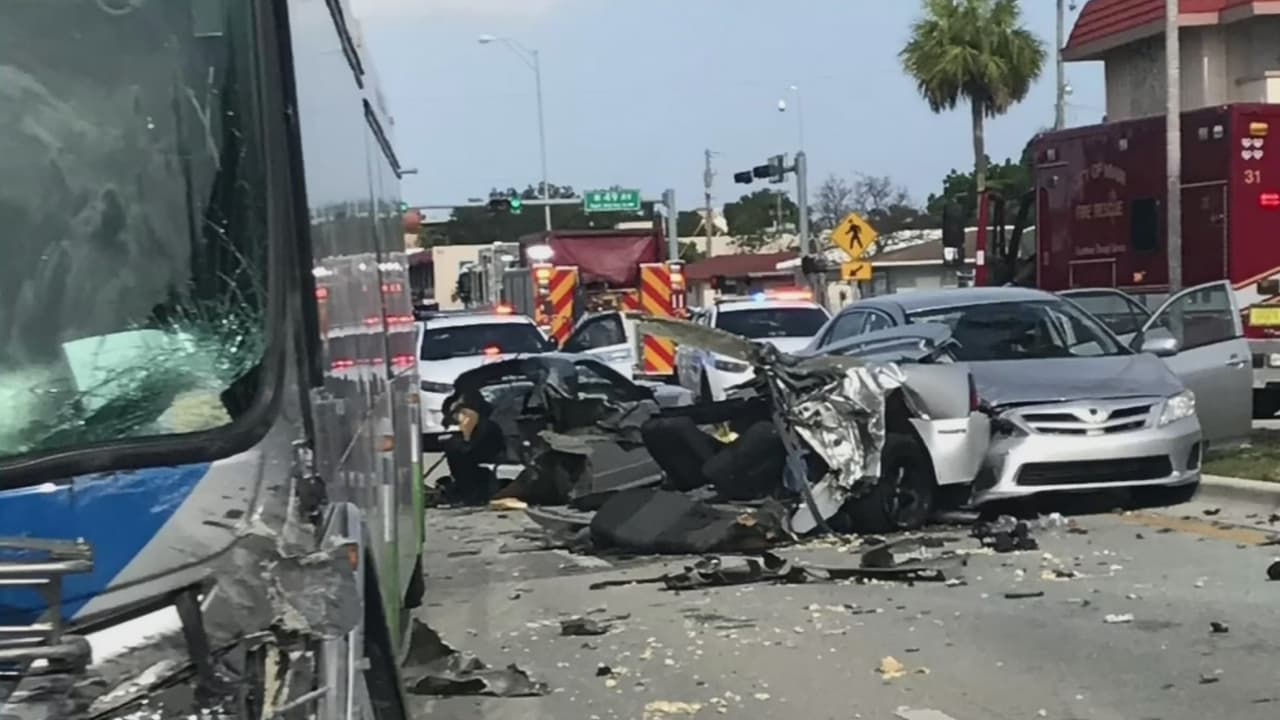 Una persona muere en un aparatoso accidente contra un bus en Flagami