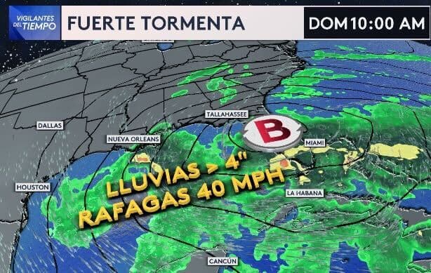 Desde el Golfo de México se aproximará a Florida una fuerte tormenta. Se esperan días de fuertes vientos y lluvias.