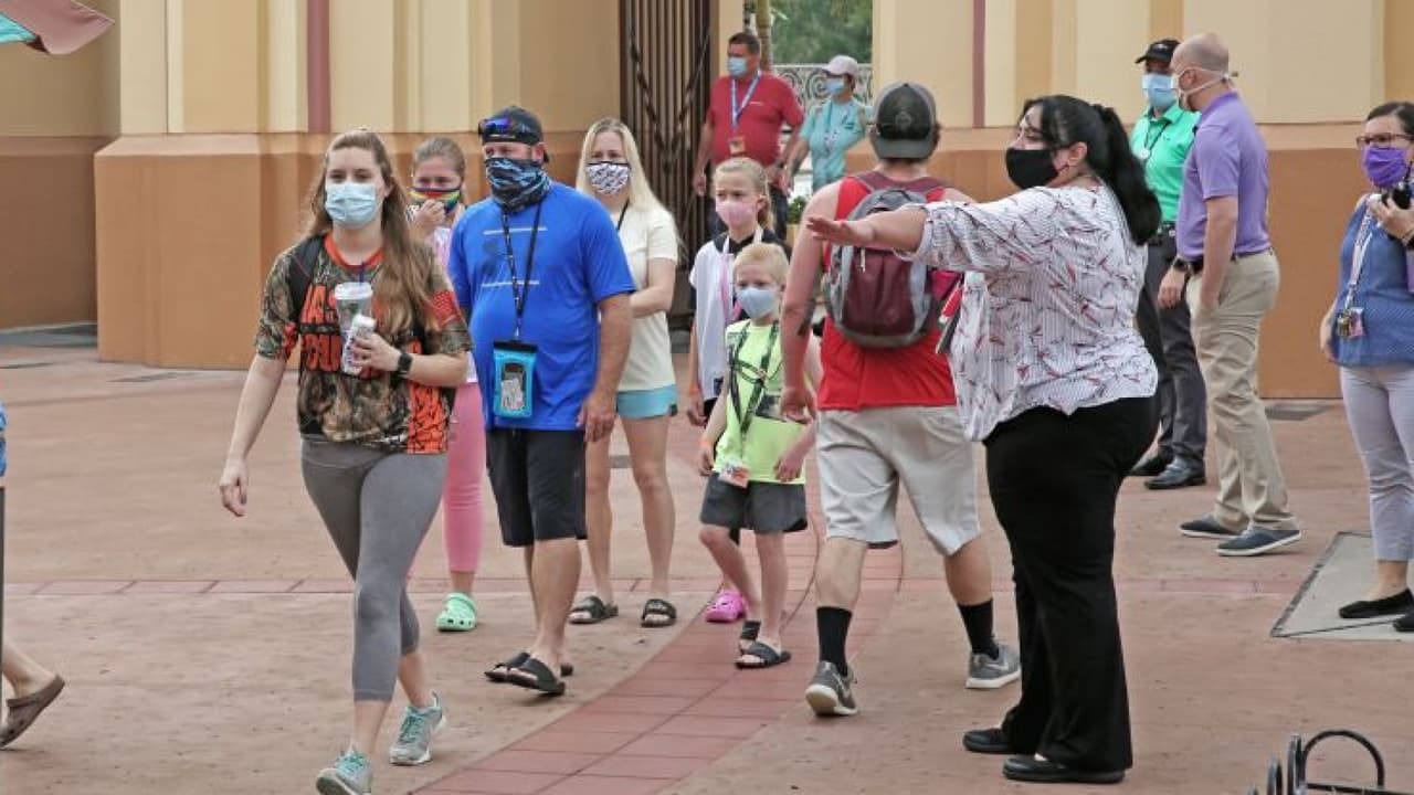 Desde que Walt Disney World reabrió en julio de 2020, solicitó el uso de las mascarillas, aunque su política fue modificada hasta solo pedir su uso en ubicaciones interiores como autobuses, Disney Skyliner, líneas interiores y atracciones interiores, según el sitio web.