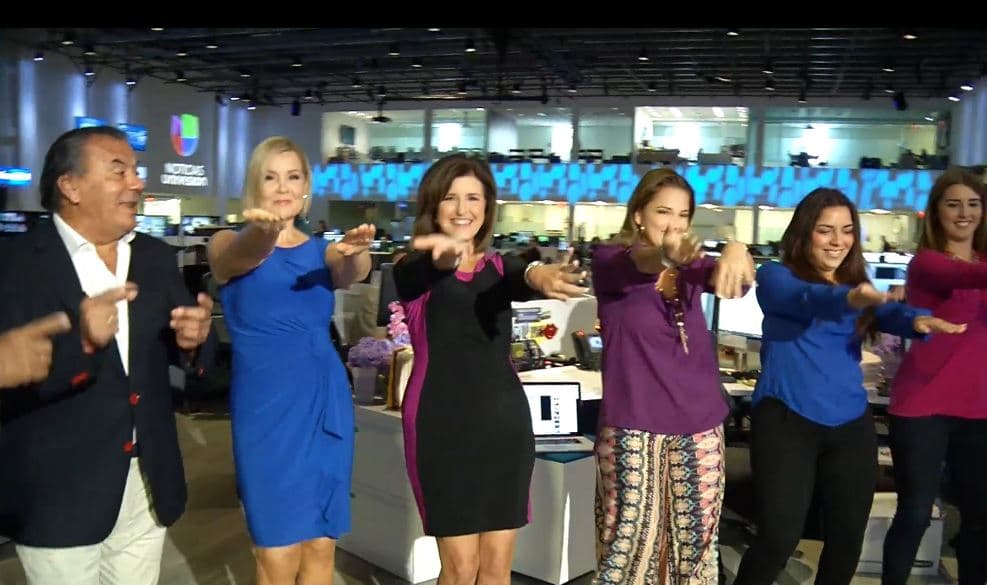 Presentadoras y reporteras de Noticias 23 en Miami se unieron al baile de la 'Macarena' y Los del Río previo a Premios Juventud.