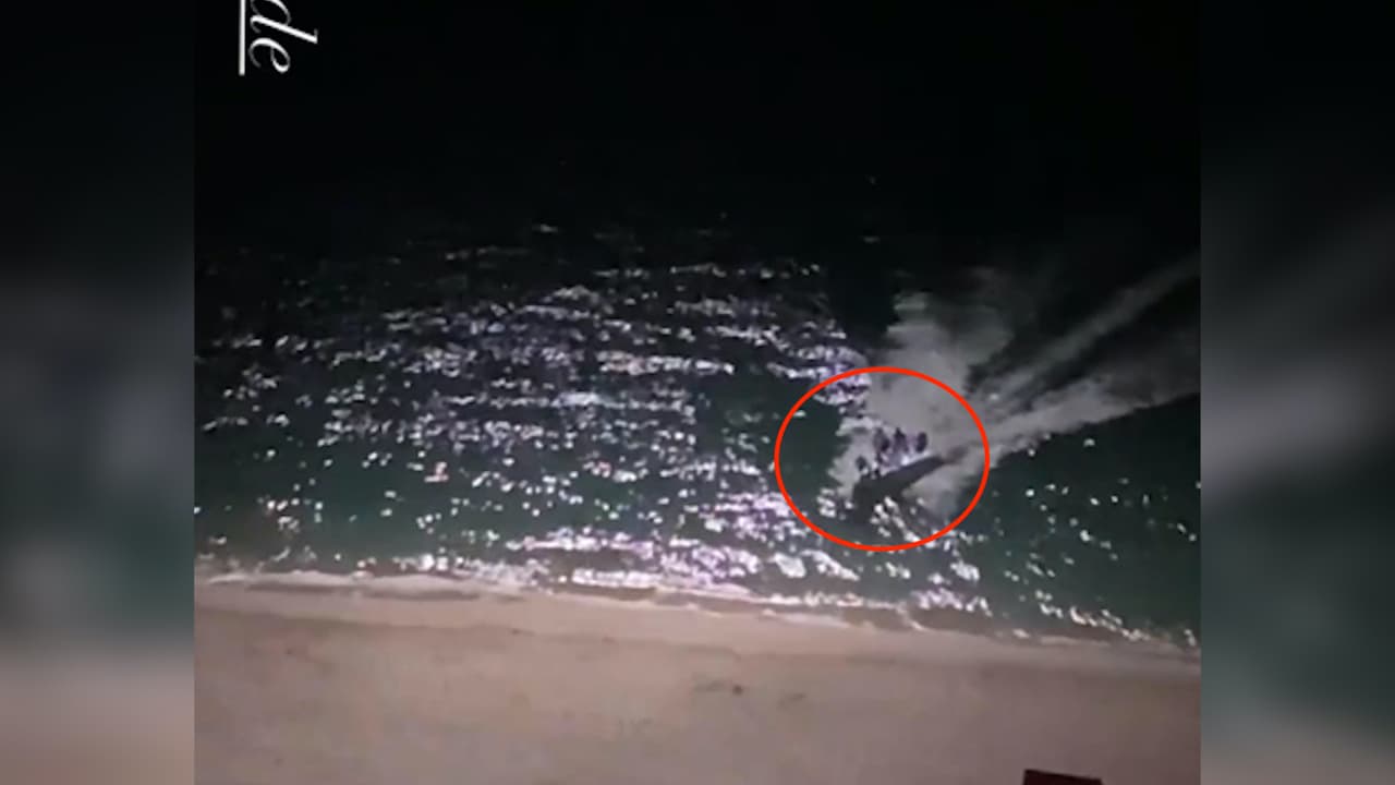 Un testigo grabó con su celular desde un condominio, el momento cuando un bote de madera llega a la costa con varios migrantes a bordo. Un helicóptero y la Guardia Costera estaba siguiéndolos, pero al tocar tierra, todos huyeron.