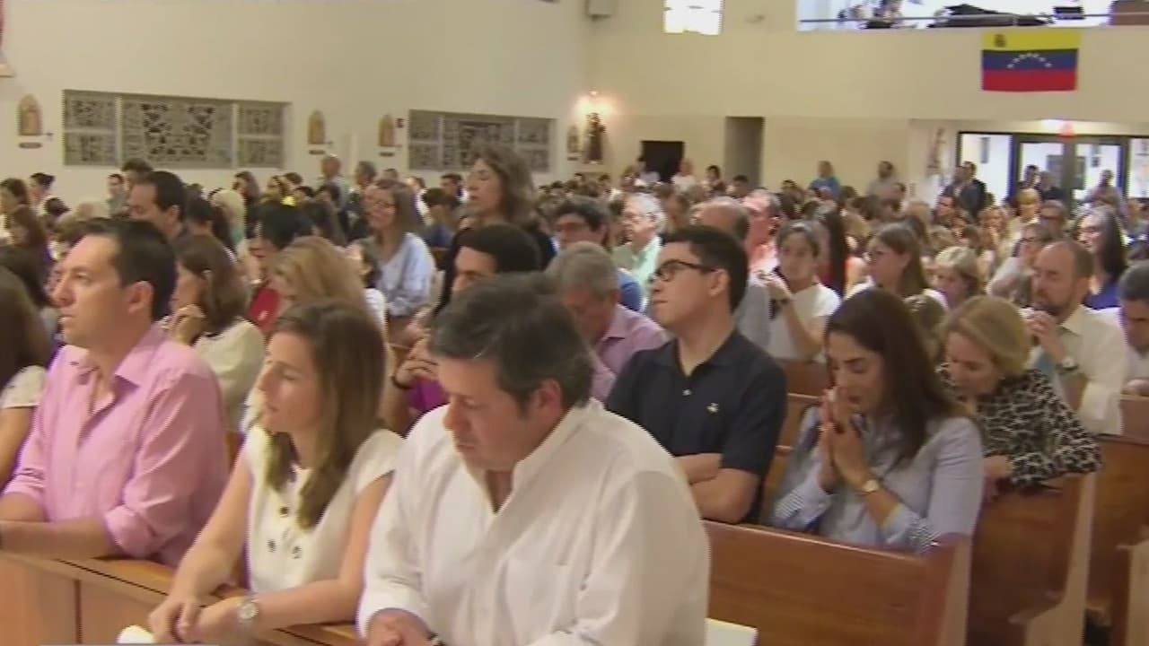 La misa, celebrada en una iglesia de Key Biscayne, fue oficiada por el sacerdote venezolano Inocencio Llano. La comunidad venezolana pidió por la pronta paz en su país, y oró por las personas que han muerto en las marchas contra el gobierno de Nicolás Maduro.