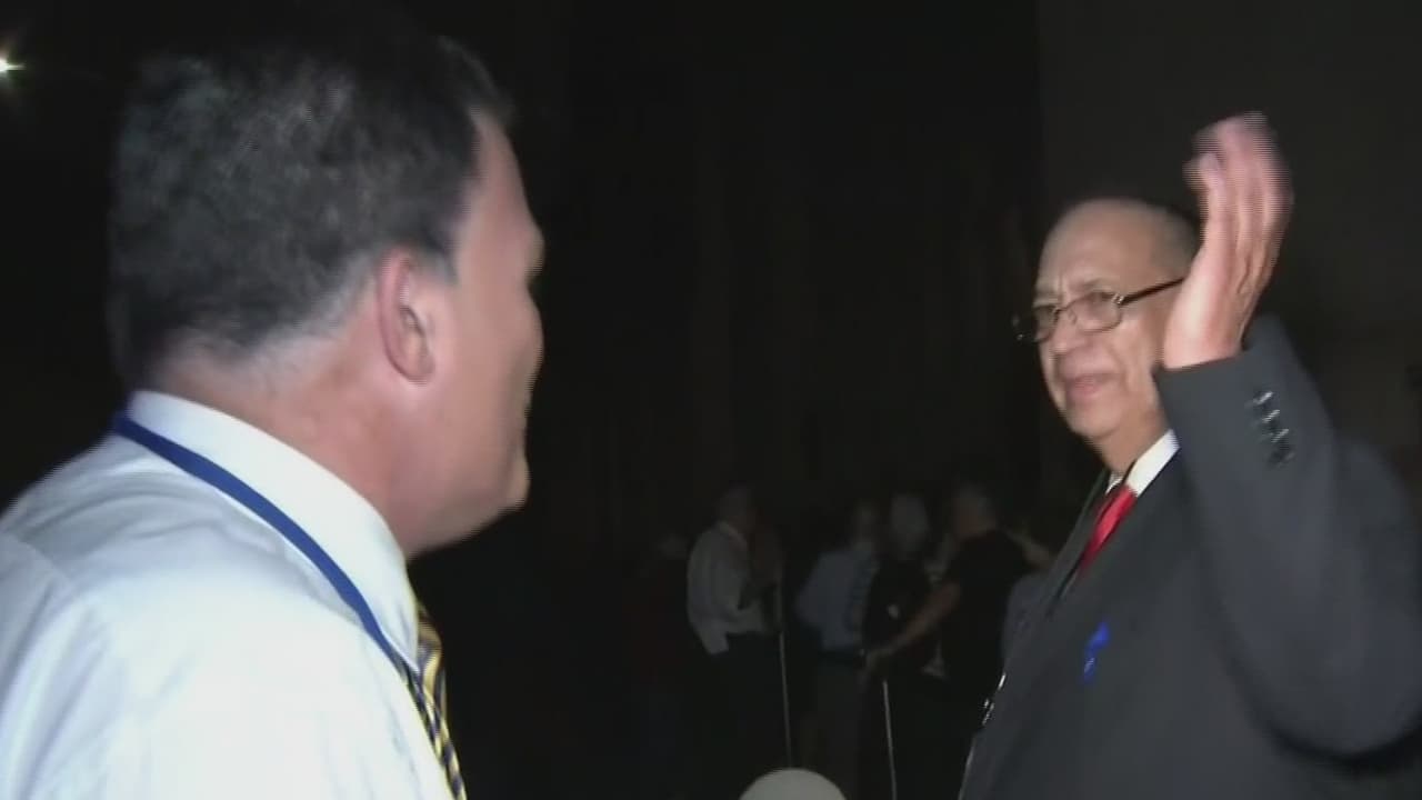 Uno de los organizadores de la fila en un evento del mandatario cubano en Nueva York se acercó a una mujer para increparla por conceder una entrevista y luego acusó al reportero de Noticias Univision 23 Miami de "instigar a la gente". Posterior a ello, el hombre evitó contestar ante los cuestionamientos del periodista y le dijo que se retirara del lugar.