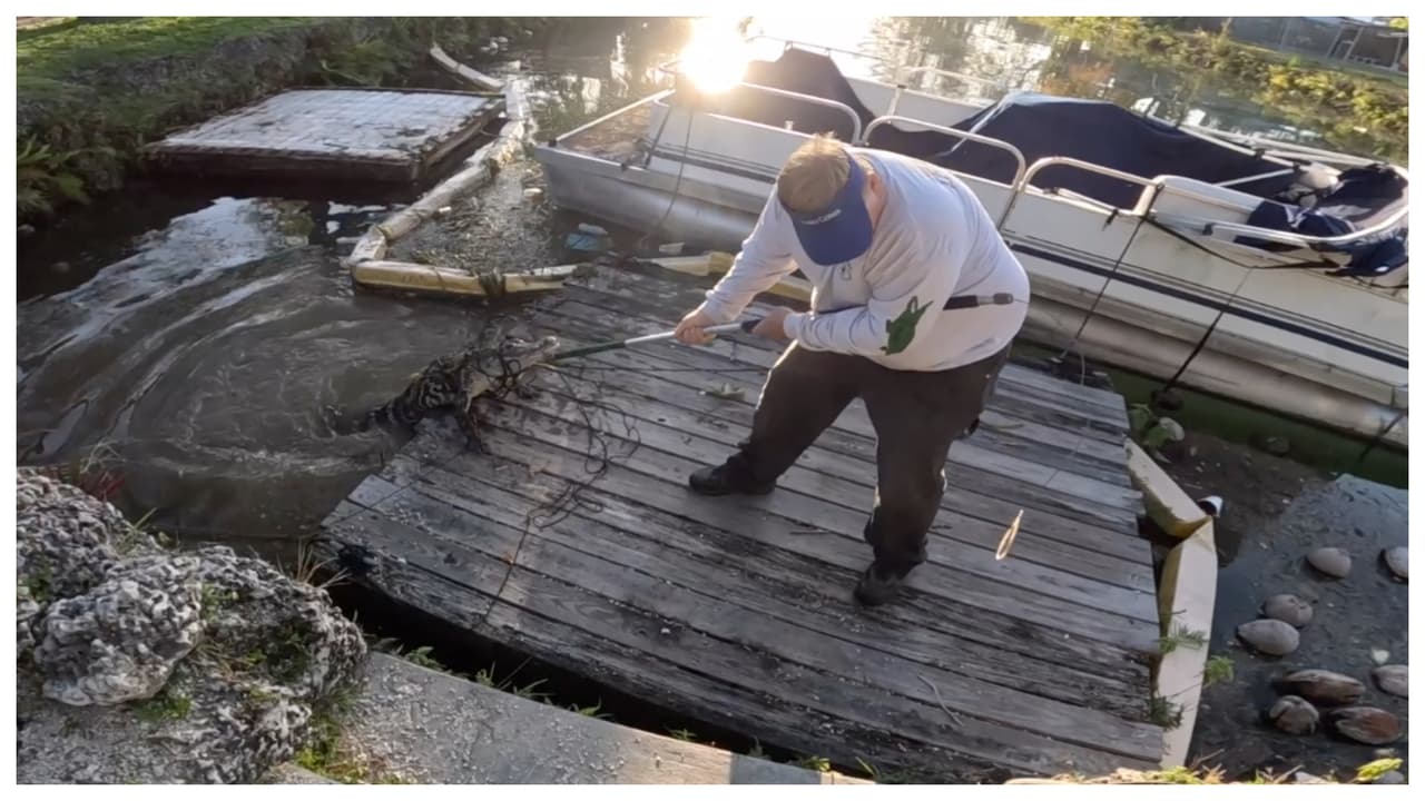 Un caimán de 7 pies de largo que salía a tomar el sol en los muelles de un vecindario de Cutler Bay, en el suroeste de Miami-Dade, fue atrapado por especialistas. El momento en que el lagarto es capturado y lucha con un empleado de una empresa de control de animales salvajes fue captado en video. Si estás en Florida y ves un caimán, no te le acerques, llama al: 866-392-4286.