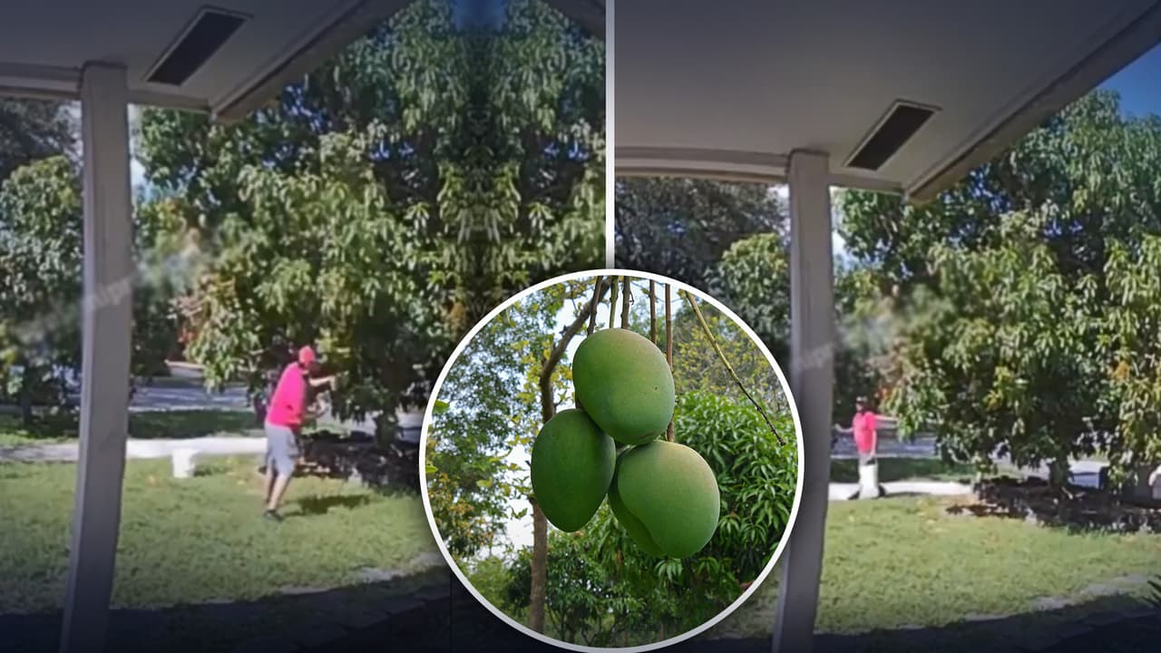 Un hombre de Miami que estaba arrancando mangos de un árbol y metiéndolos en una cubeta, fue sorprendido en el acto.