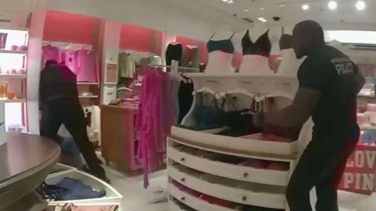 El video de una cámara corporal de un oficial en Miami Beach muestra el momento en que un hombre sostiene y amenaza con cuchillo al empleado de una tienda y a una menor. El hecho ocurrió a finales de julio de 2023 y el sujeto fue abatido por la policía.