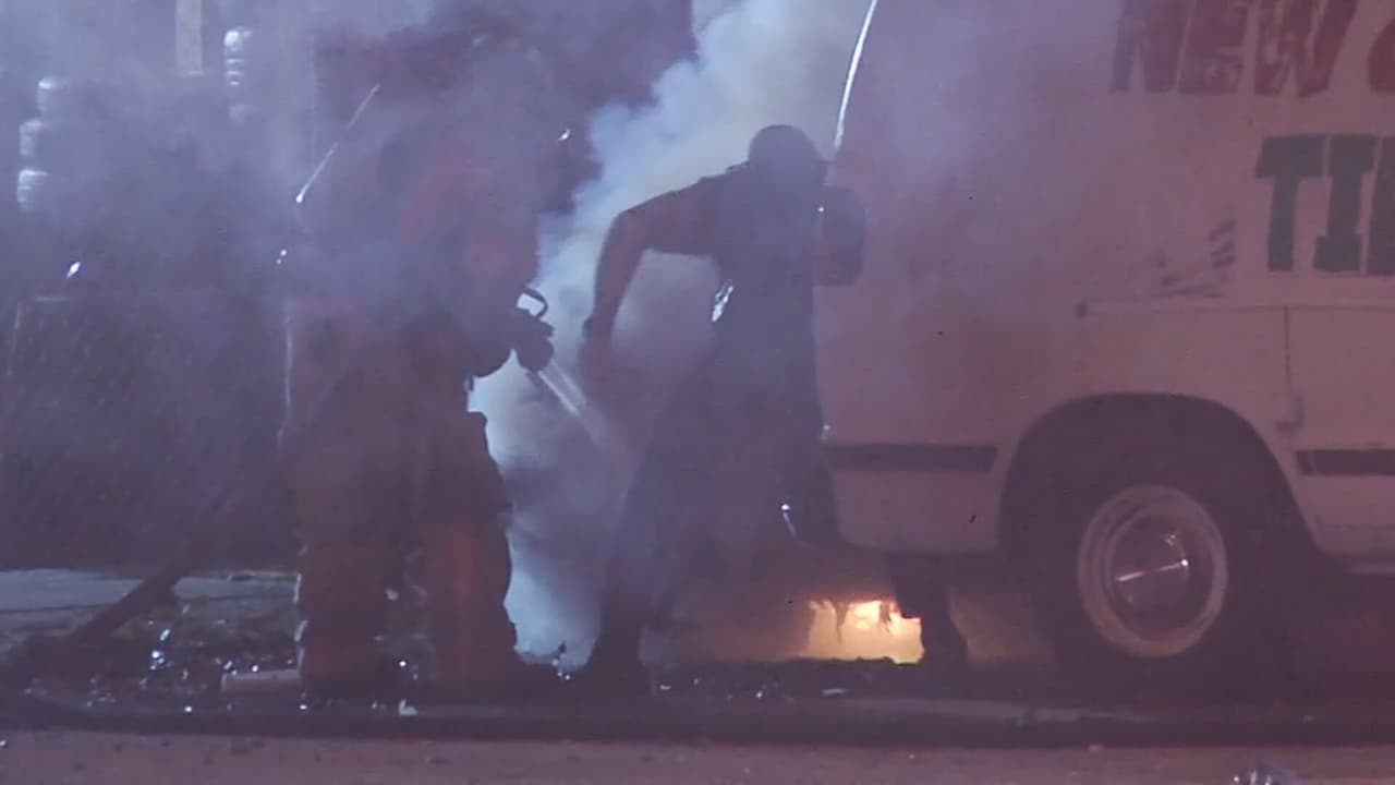 Un video muestra el angustiante momento en que un bombero y un policía de la ciudad de Lauderhill, en el condado Broward, intentan por cualquier medio sacar a una mujer de un carro que se incendiaba tras estrellarse contra una tienda de neumáticos. El vehículo quedó completamente destrozado.