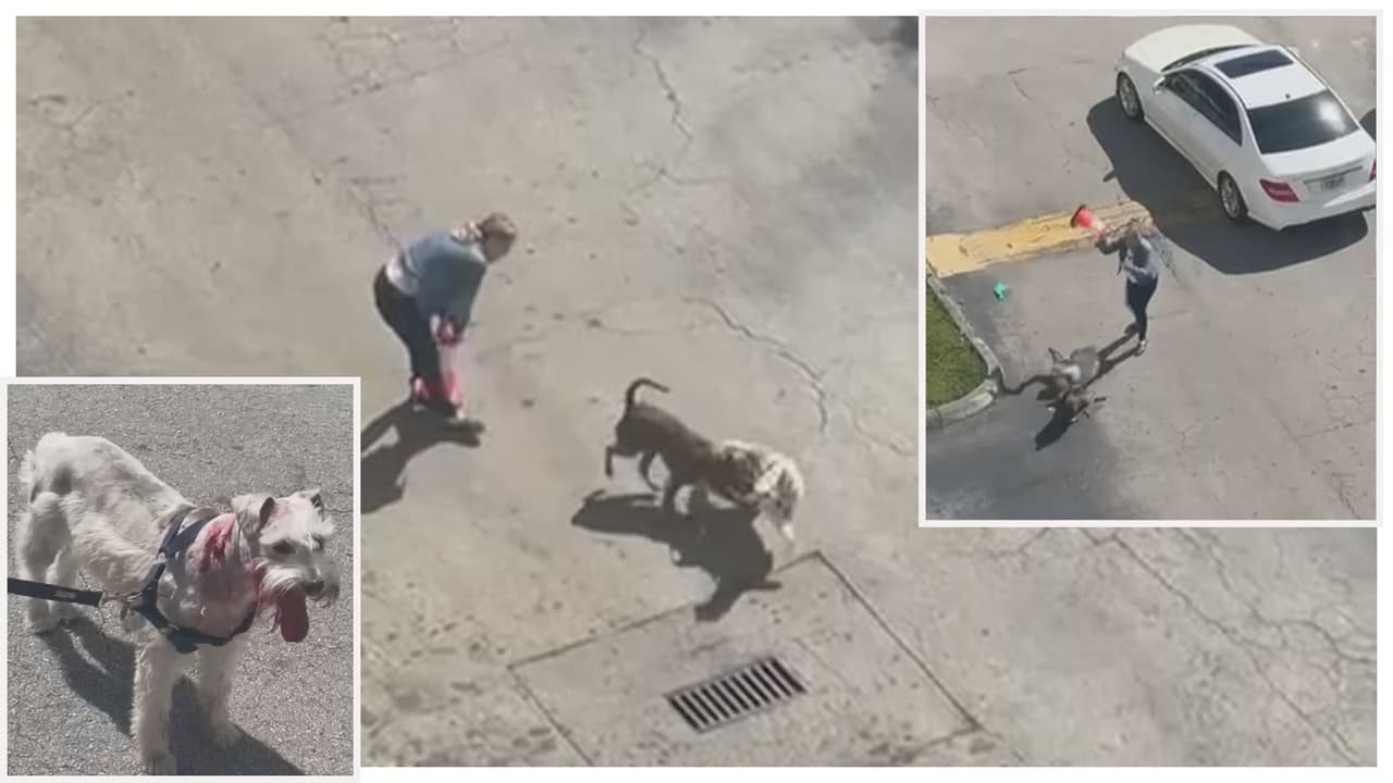 Video muestra feroz ataque de un perro American Bulldog a un Schnauzer en Miami-Dade