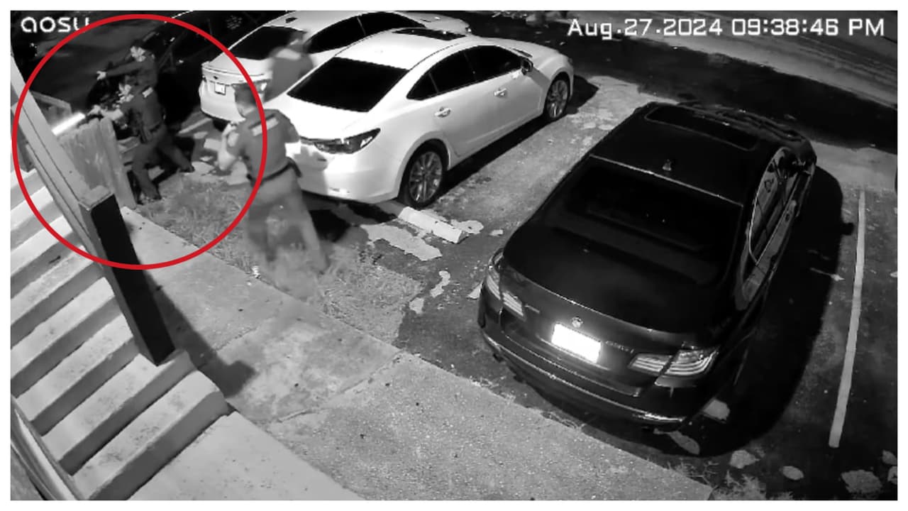 Un video de seguridad muestra el momento en que oficiales de policía de Pompano Beach disparan a un sospechoso. Las autoridades atendieron un llamado sobre disparos en el área cerca del bloque 700 del noroeste y la avenida 5 el martes en la noche.