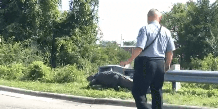 Policías de Charlestone se lanzan sobre un caimán gigante que estaba en zona residencial