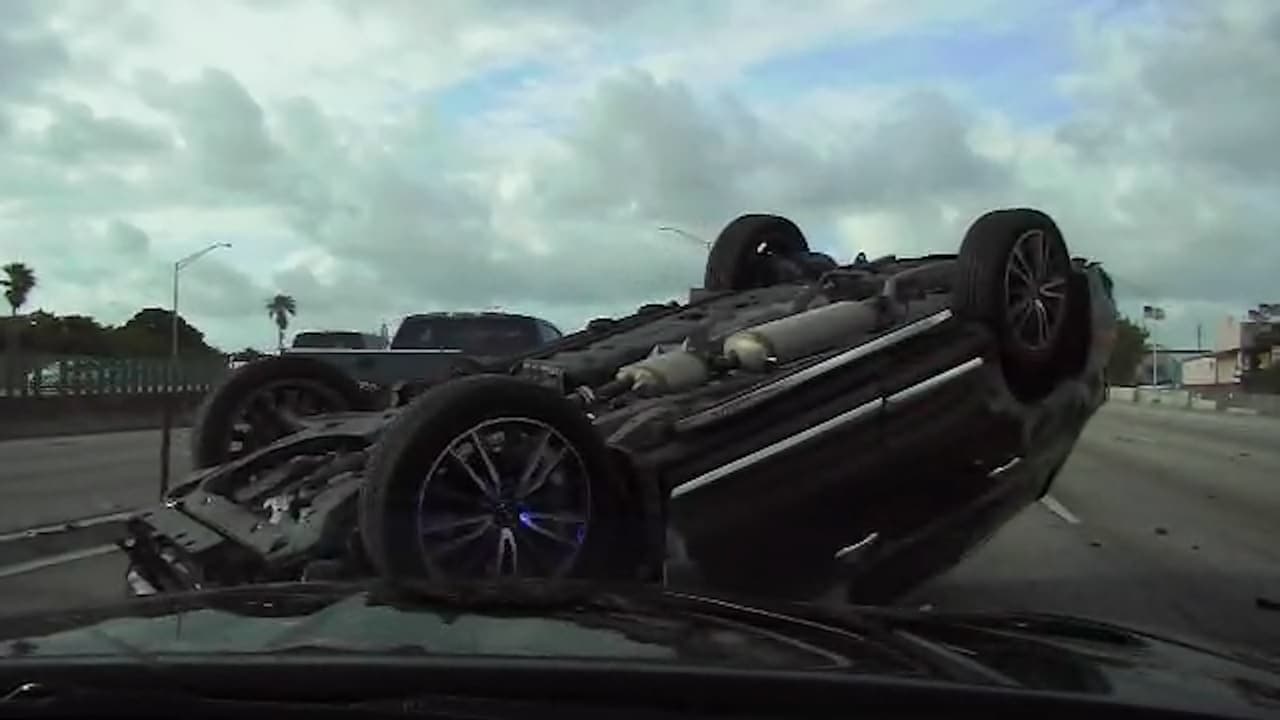 Cuando el conductor del carro robado se desplazaba por la I-95 sentido sur en Broward, intentando salir por Pembroke Road, el SUV se volteó y algunos de los ocupantes trataron de salir por el parabrisas.